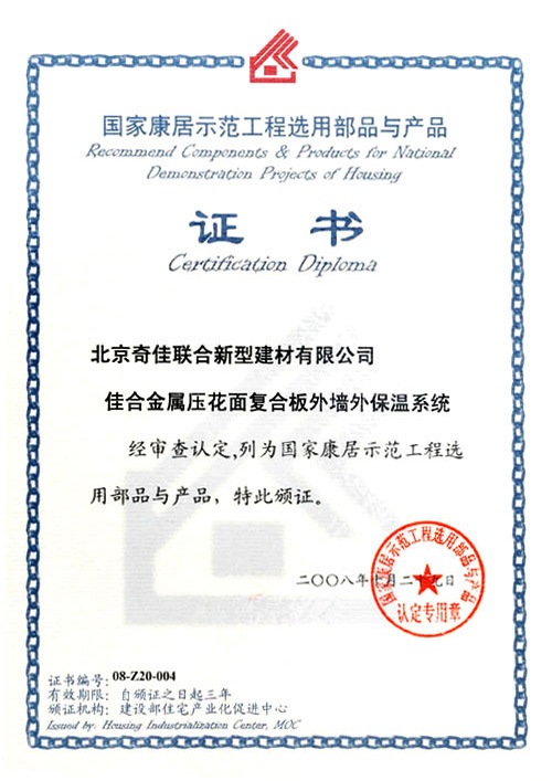 - 2008年被選入“國(guó)家康居示范工程選用部品與產(chǎn)品”