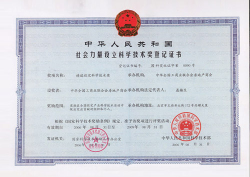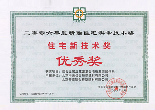 - 2006年榮獲中國(guó)第三屆“精瑞住宅新技術(shù)優(yōu)秀獎(jiǎng)”