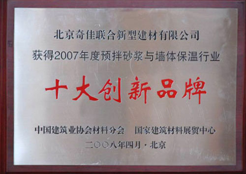 - 2007年被列入中國(guó)墻體保溫行業(yè)“十大創(chuàng)新品牌”